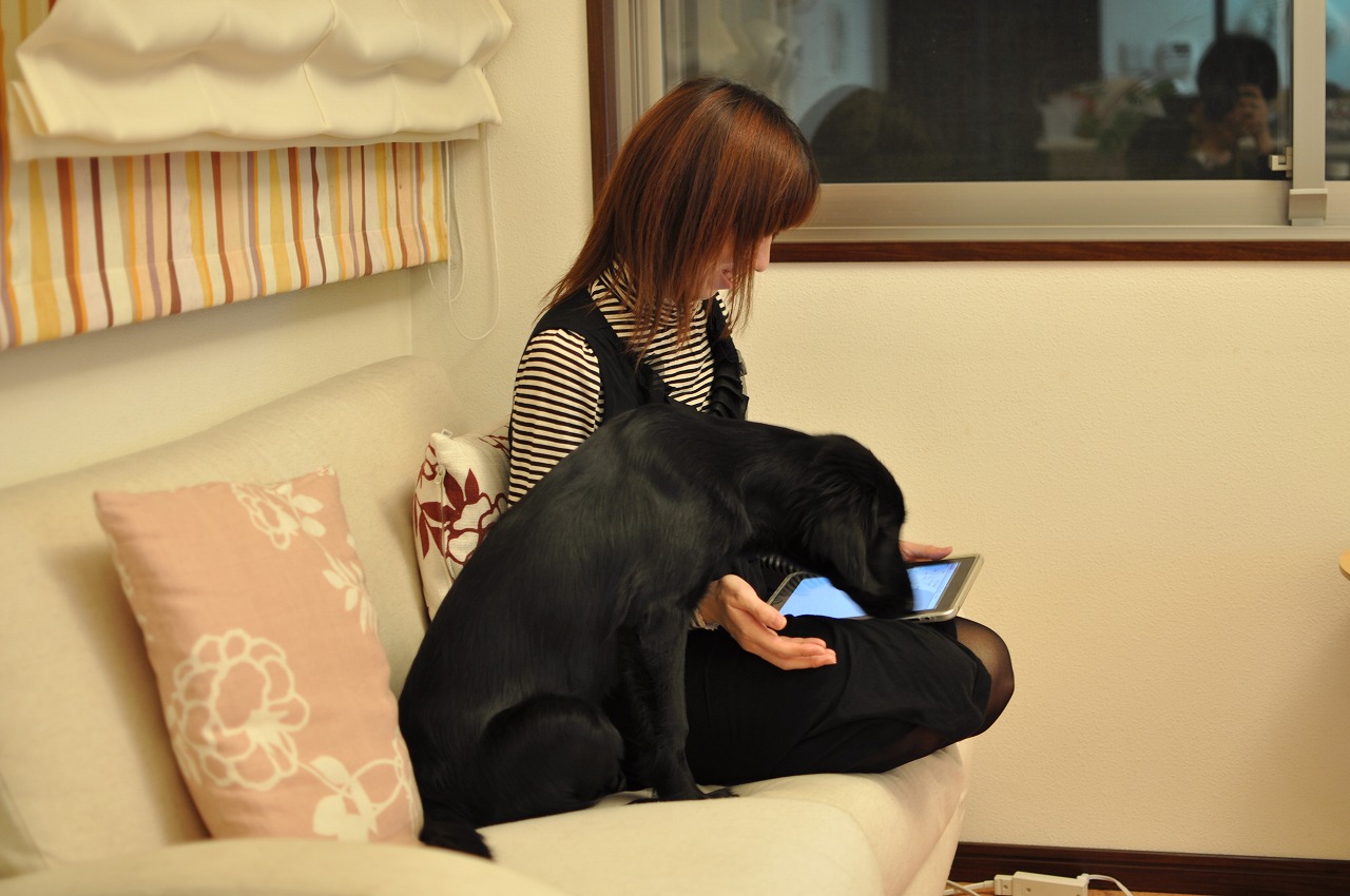 もの凄い勢いでヨシの顔を舐めてて、このフレンドリーさがやっぱりフラットだよねえ、とほっこり。